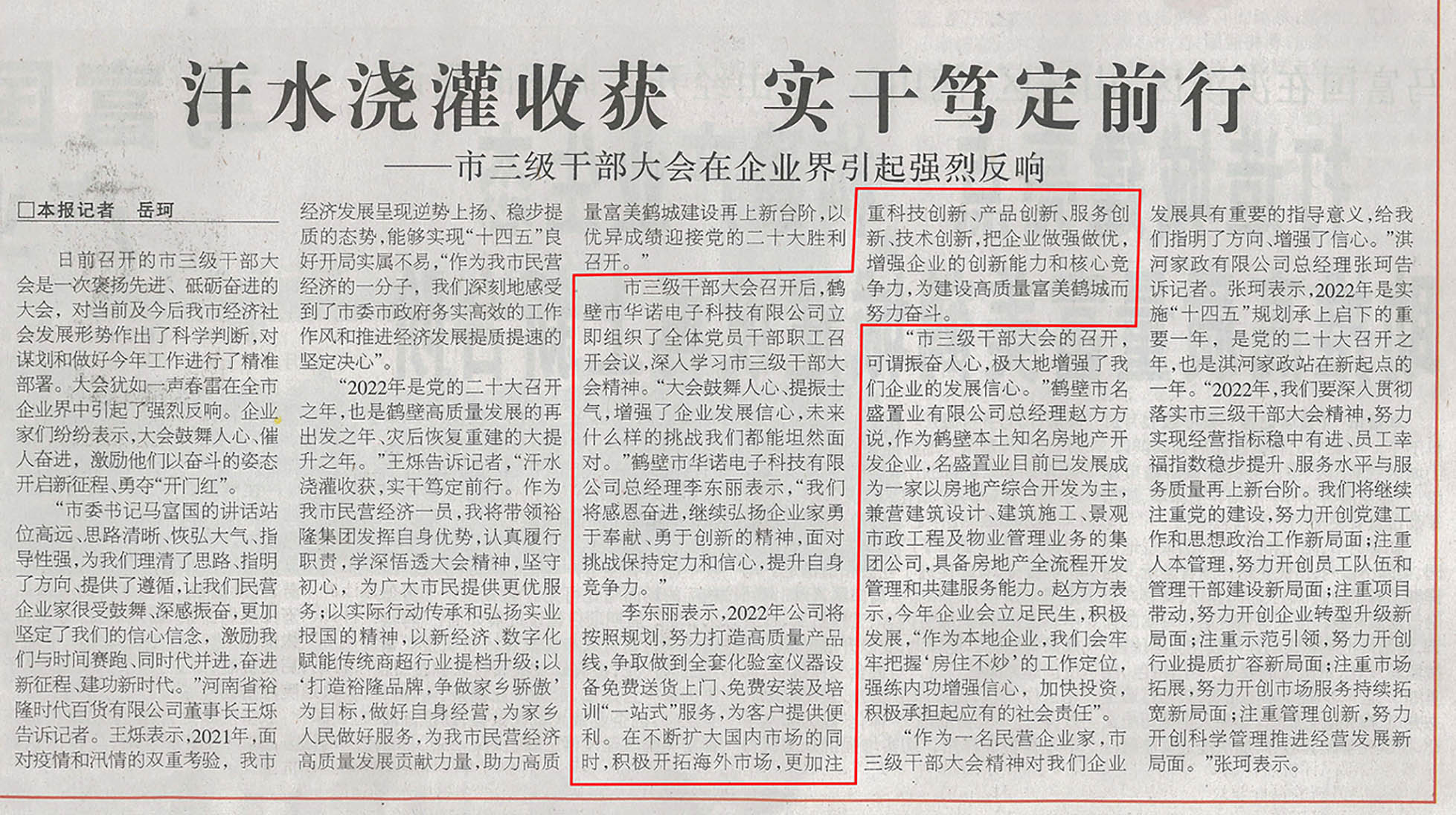 近日,為學(xué)習(xí)貫徹鶴壁市三級干部大會精神,鶴壁市華諾電子科技有限公司全體黨員干部積極參加。作為煤炭化驗(yàn)設(shè)備行業(yè)優(yōu)秀企業(yè),鶴壁日報(bào)針對此次會議對華諾電子進(jìn)行報(bào)道。