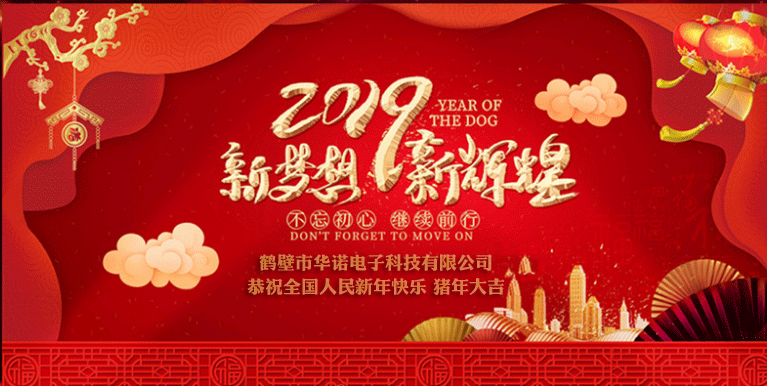 尊敬的廣大新老客戶: 鶴壁市華諾電子科技有限公司全體員工在此深深感謝您長期以來對我司的支持與厚愛!向您致以誠摯的祝福和問候! 根據《國務院辦公廳關于2019年節...